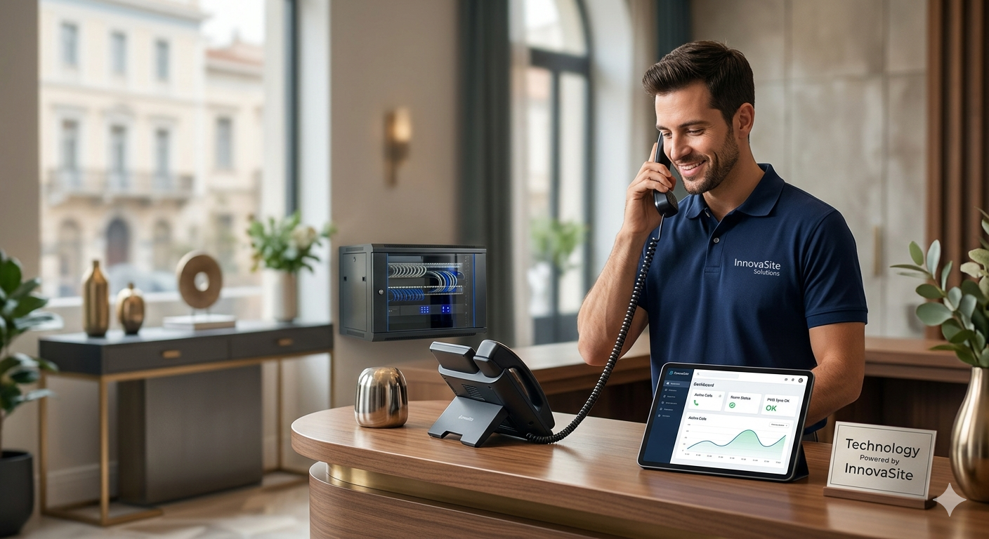 Στον κλάδο της φιλοξενίας και των μεσαίων επιχειρήσεων, το τηλέφωνο δεν είναι απλώς ένα εργαλείο, είναι η βάση της εξυπηρέτησης των πελατών σας. Το πακέτο “InnovaSite Business” προσφέρει την τεχνική υπεροχή που χρειάζεστε για να διαχειριστείτε αυξημένο όγκο κλήσεων και σύνθετες υποδομές.